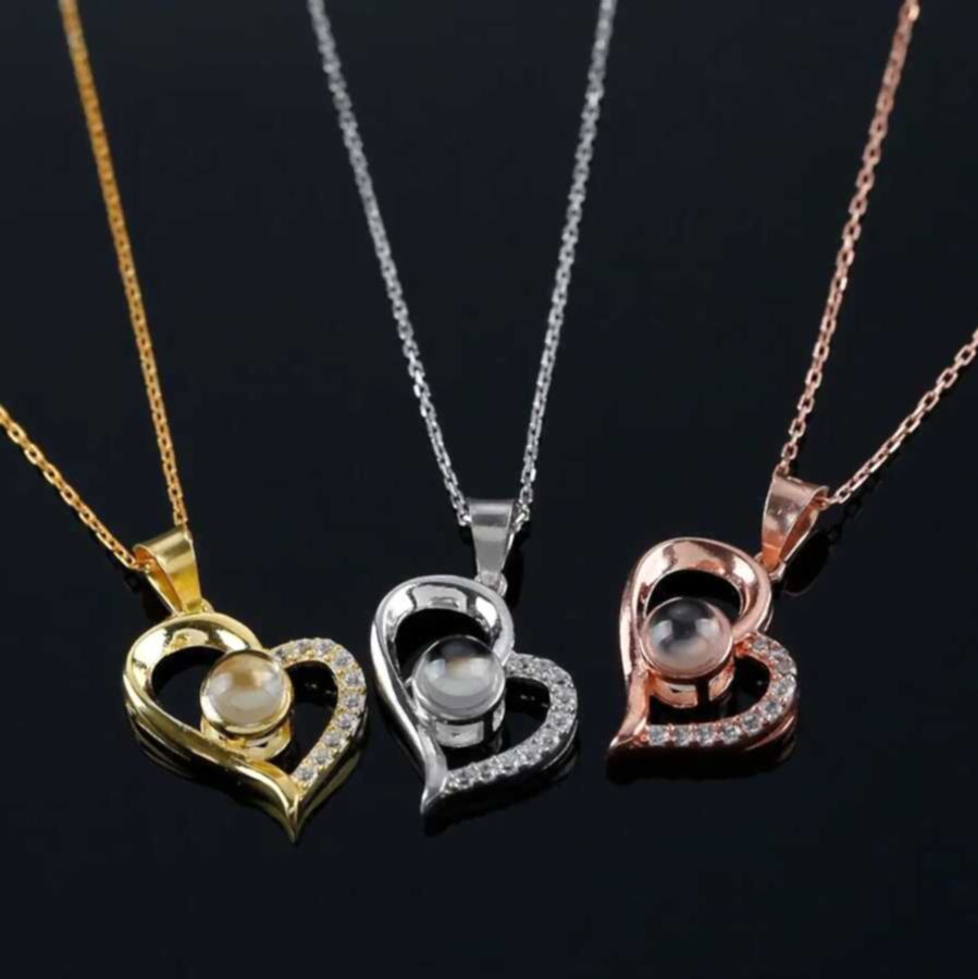 - 100 Dilde Seni Seviyorum Kalp Zincirli Projeksiyon Kolye Kaliteli çelikten yapılmıştır.