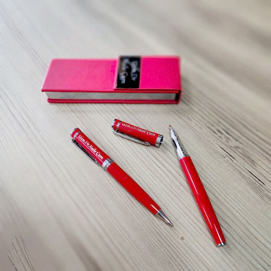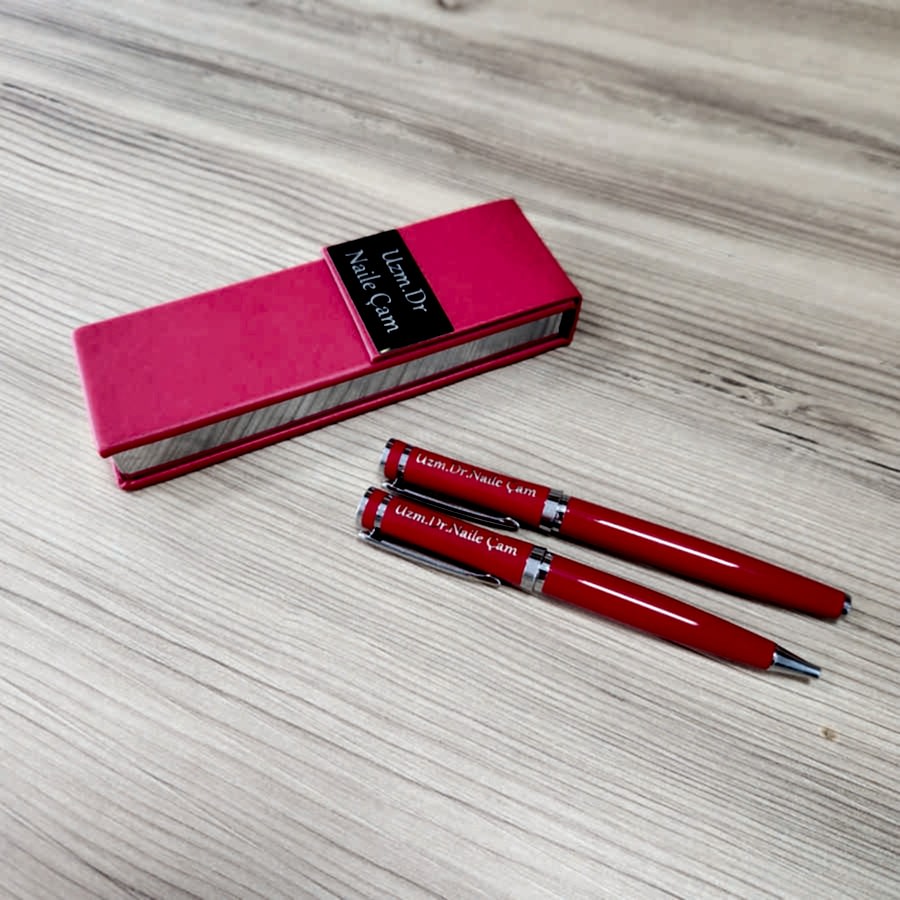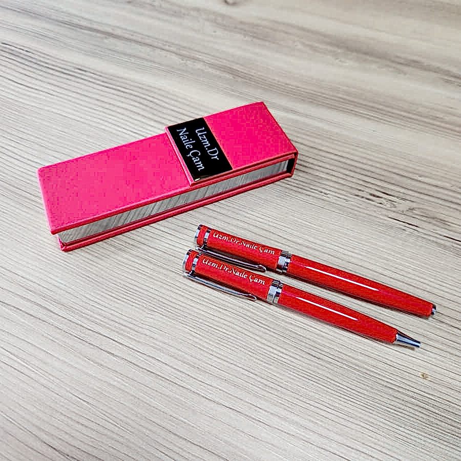 Kişiye Özel Baskılı Lüks Kırmızı Kalem Seti