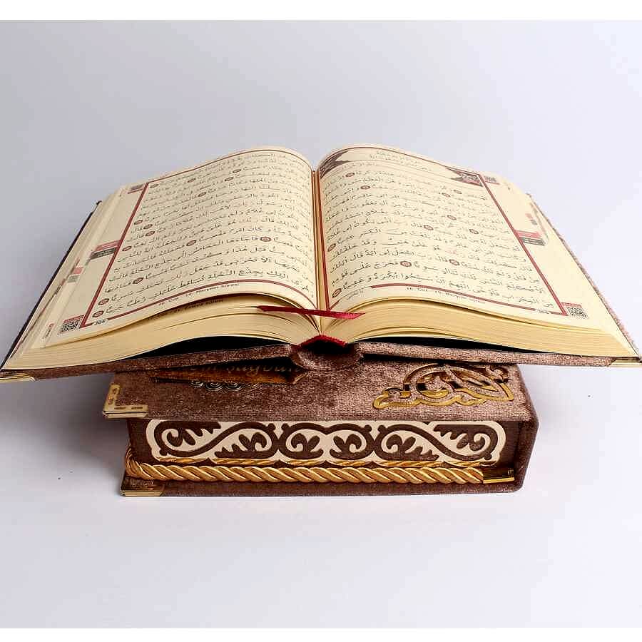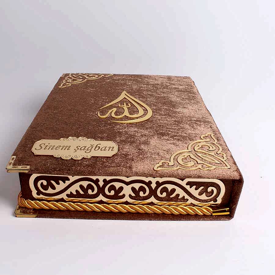 - Özel tasarım NUBUK Kadife kaplı Kuran ı Kerim