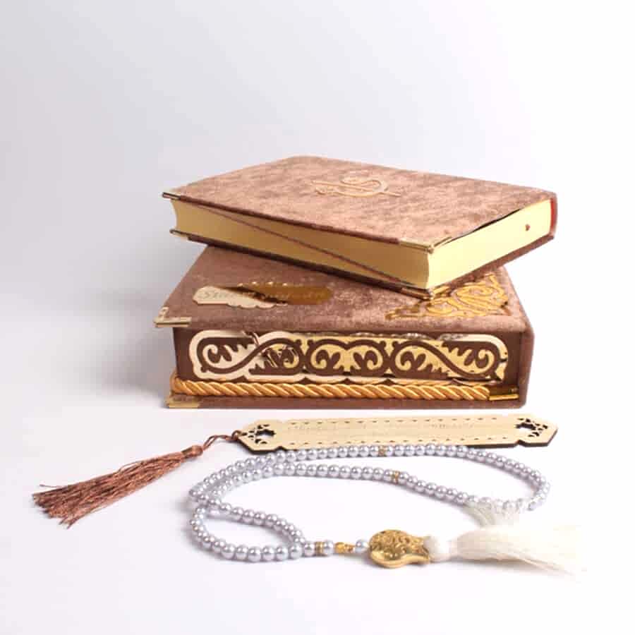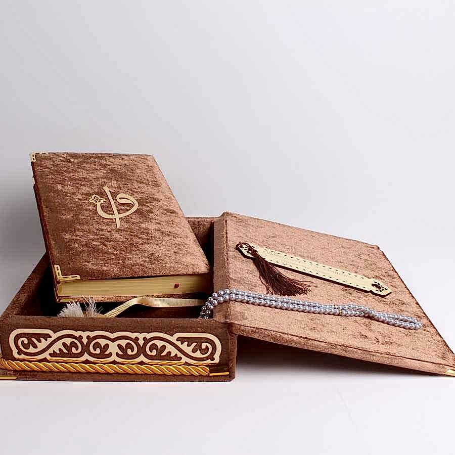 - Kişiye Özel Kadife Kaplamalı ve Kutulu Gold Renk Lüks Kuran-ı Kerim Seti