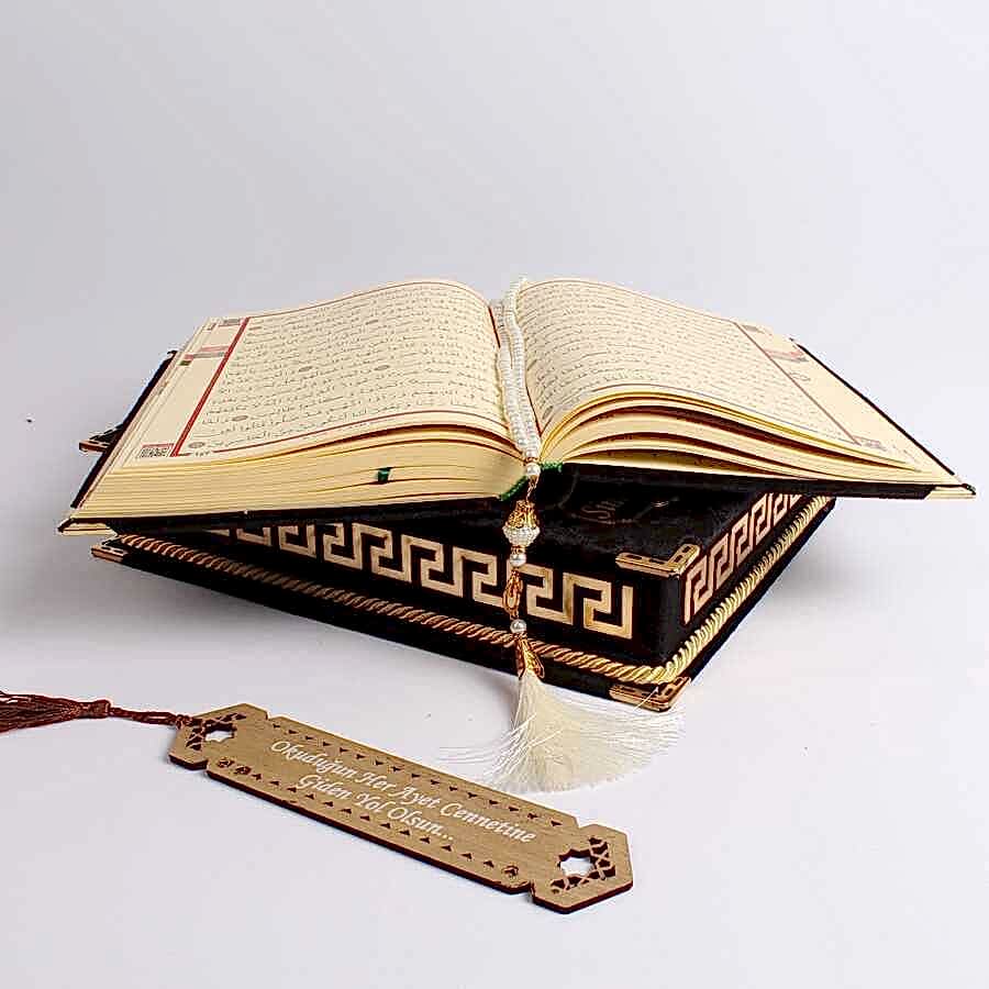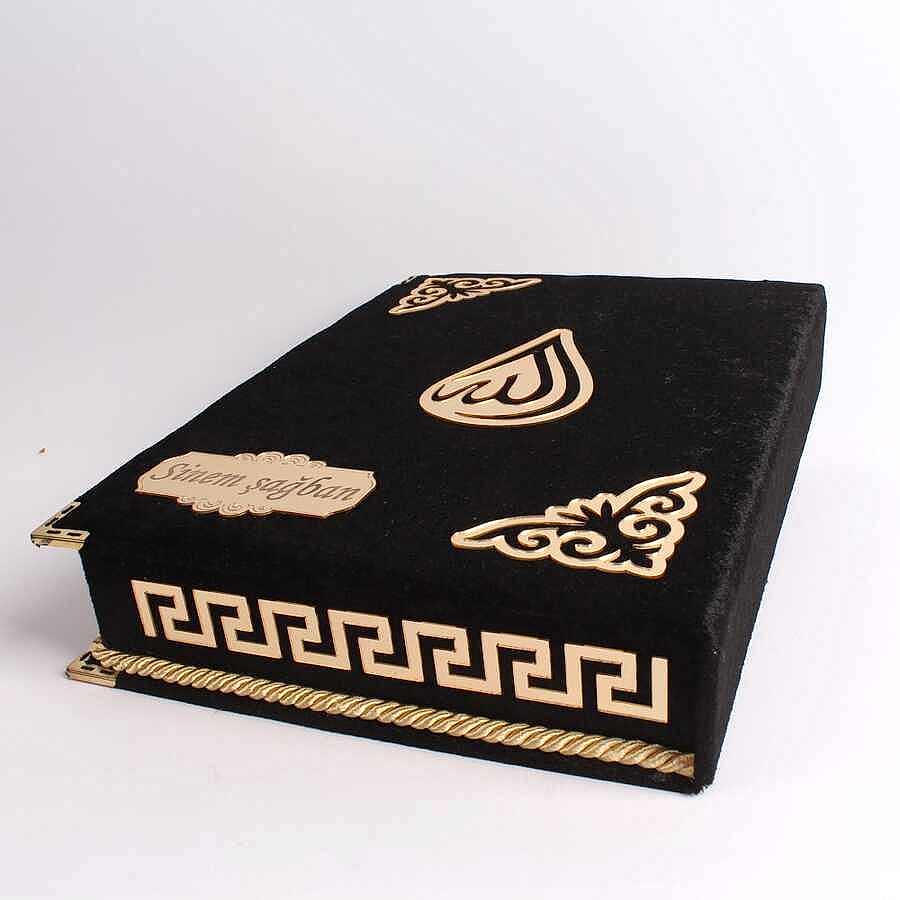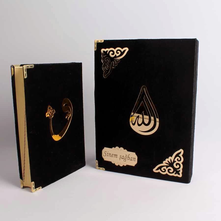 - Kişiye Özel Kadife Kaplamalı ve Kutulu Siyah Renk Lüks Kuran-ı Kerim Seti