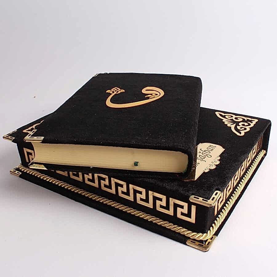 Kişiye Özel Kadife Kaplamalı ve Kutulu Siyah Renk Lüks Kuran-ı Kerim Seti